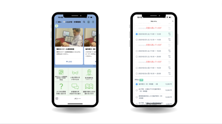 | 「人生が変わるメガネ」でオーダーできるメガネは、よくある街のメガネ屋さんとは違って「脳内視力(R)」を調整するものです。 そのため、まずは無料セミナーに参加して、「なぜよく見えるようになるのか?」といった見え方の仕組みをお伝えするところからスタートします。 ① 無料セミナー&簡易検査会 → ② 本検査 → ③メガネづくり の3つステップがあり、今回の【LINE公式アカウント+Lステップ】の構築では、「②本検査の予約管理」の業務効率化を目的に構築しました。 |